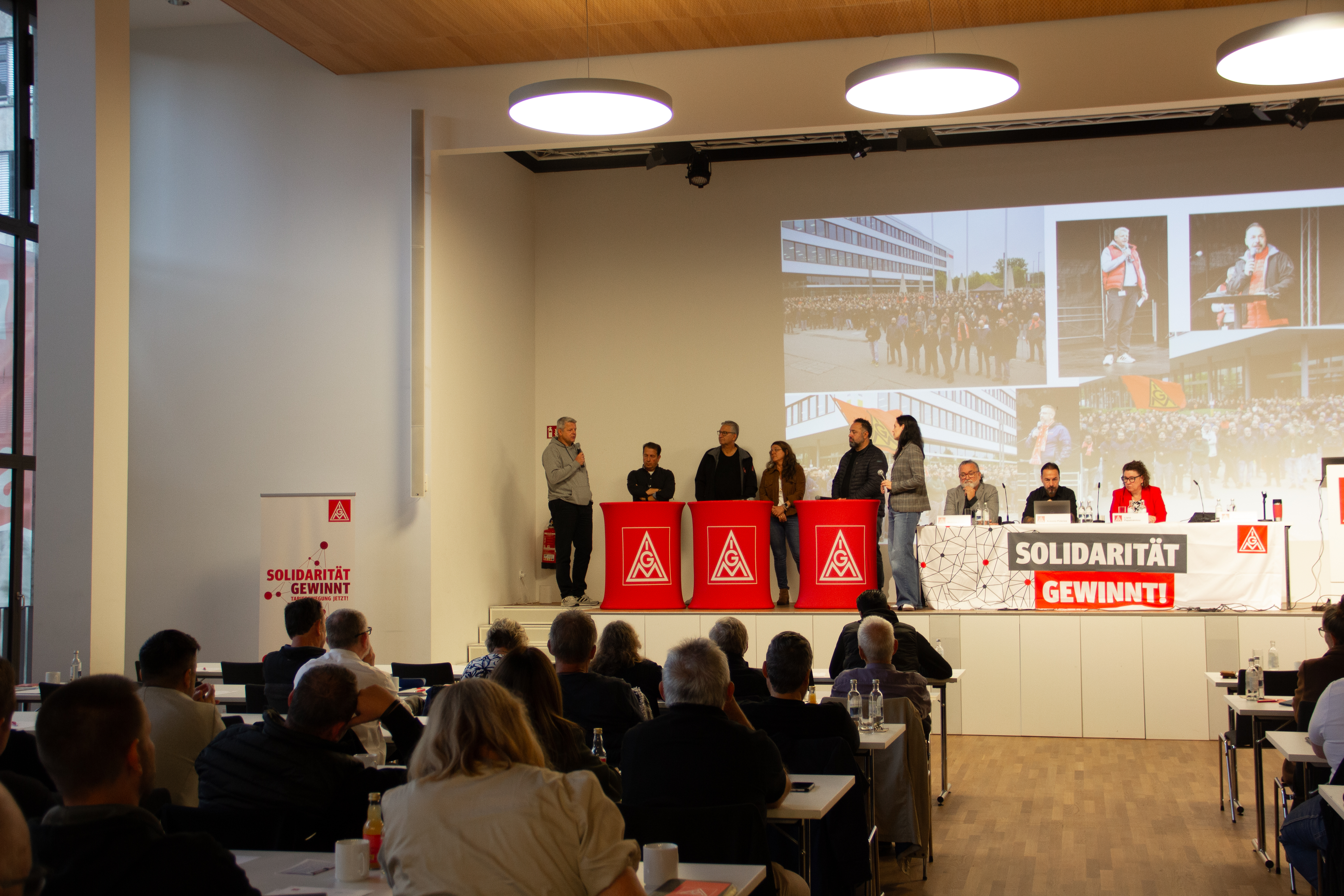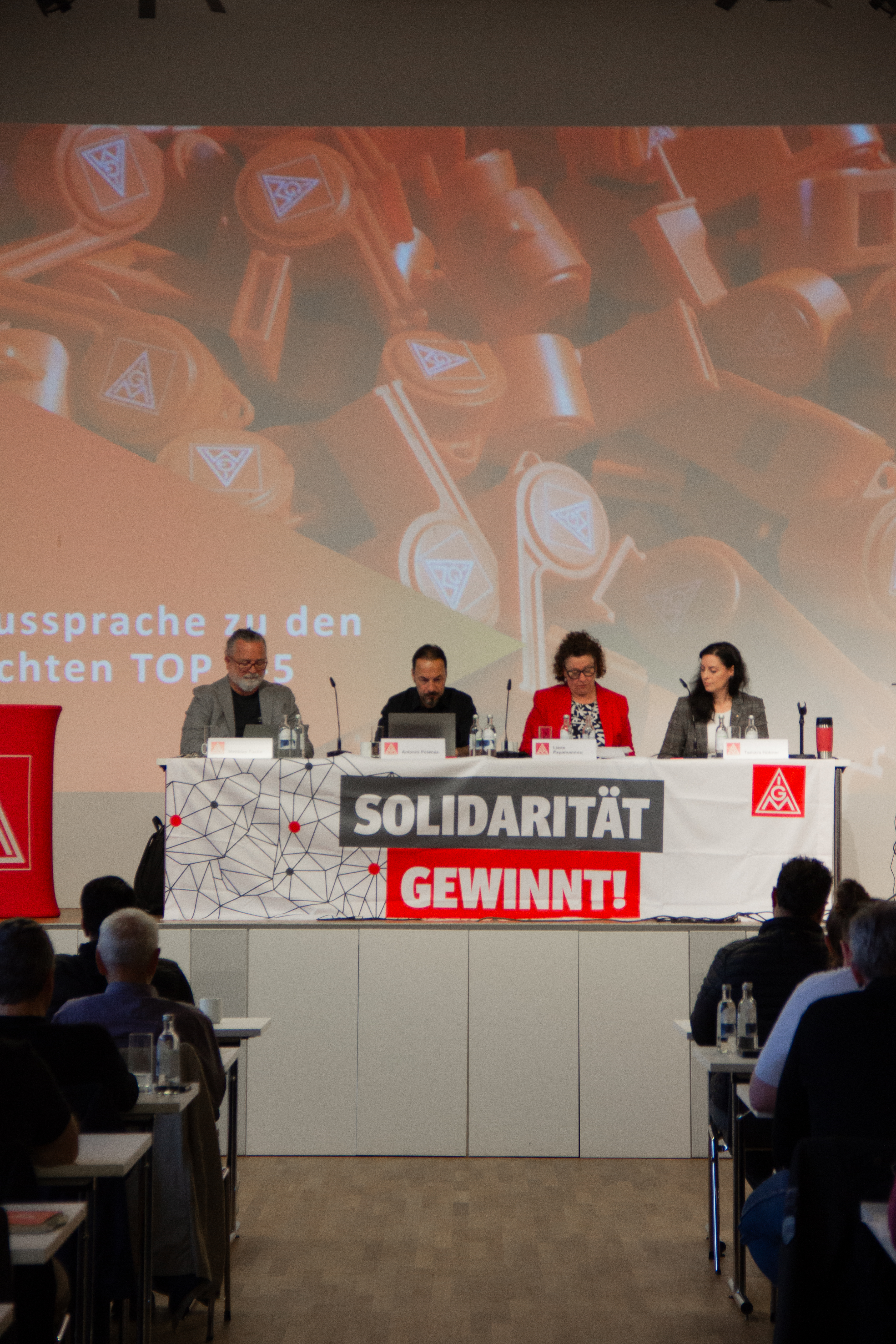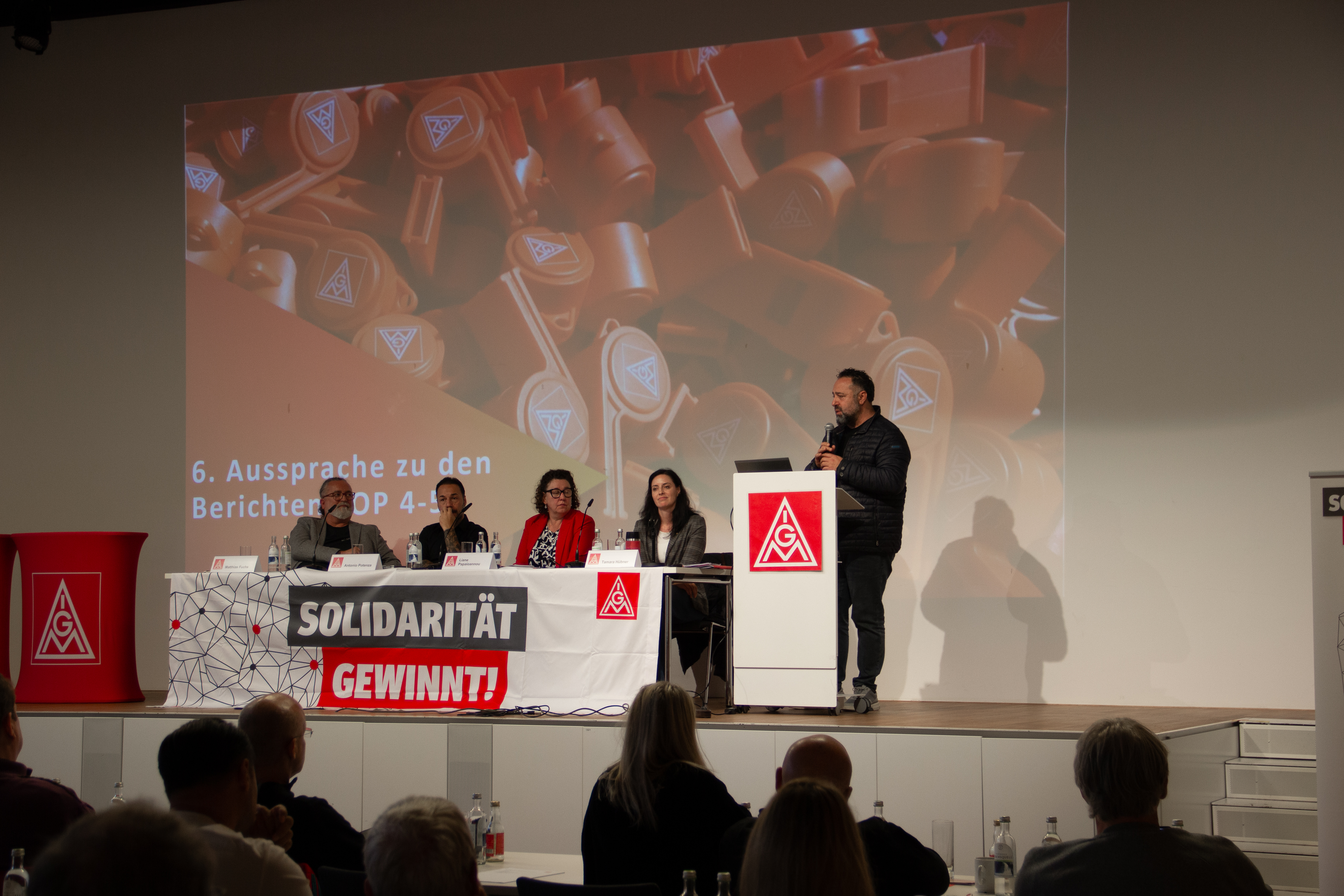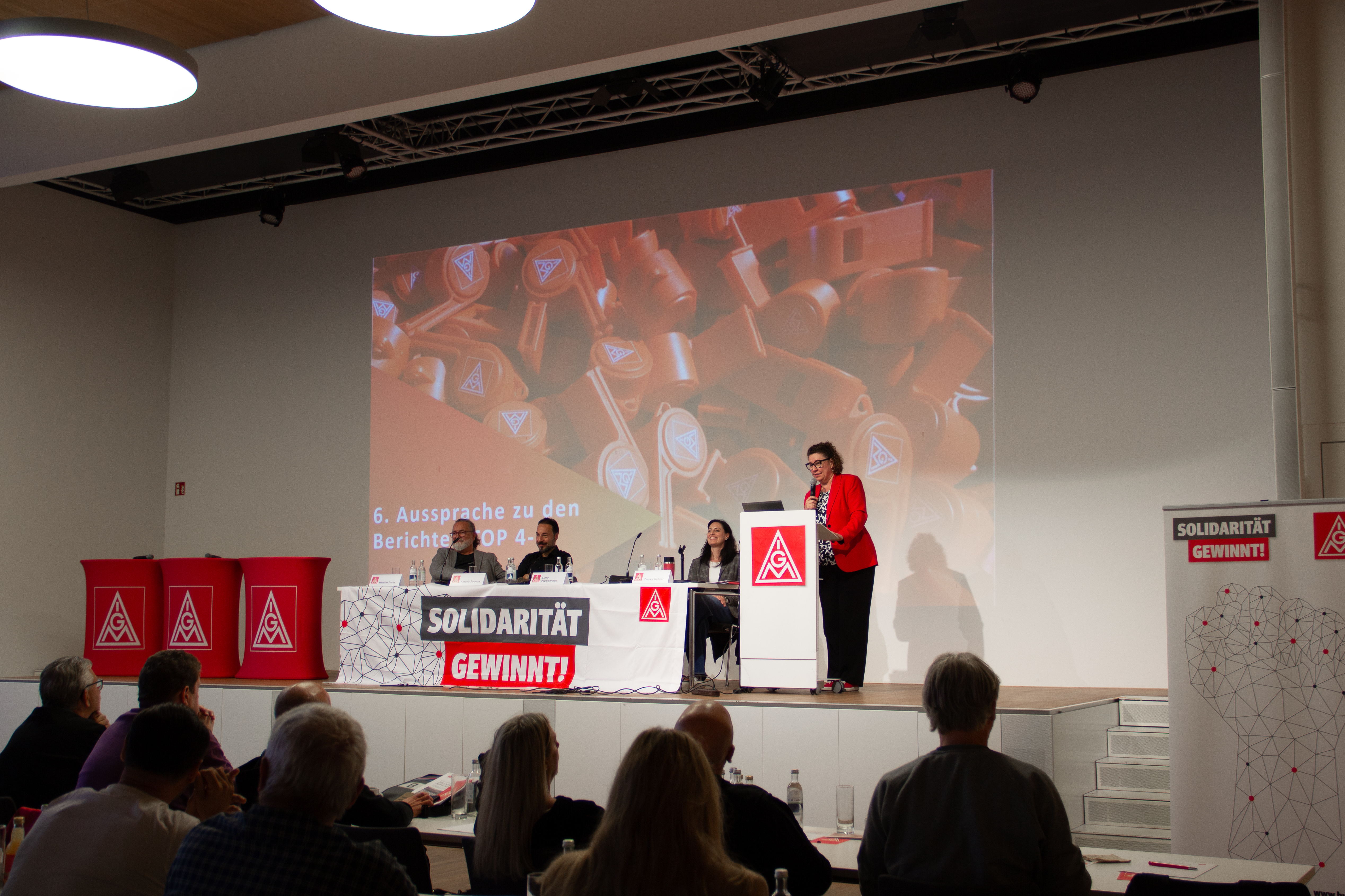 Am 27. September 2025 kamen die Delegierten der IG Metall Stuttgart zu ihrer turnusmäßigen Versammlung zusammen. Liane Papaioannou, Erste Bevollmächtigte und Geschäftsführerin der IG Metall Stuttgart, eröffnete die Versammlung mit einem politischen Bericht. Dabei ging sie auf Themen der internationalen Sicherheitspolitik und die Auswirkungen der aktuellen Wirtschaftspolitik ein. Ein besonderer Fokus lag auf der Arbeitsmarktpolitik. Ergänzt wurde dieser Fokus durch einen Bericht von der Industriekonferenz der IG Metall, die wichtige Impulse für die zukünftige Industriepolitik setzte.