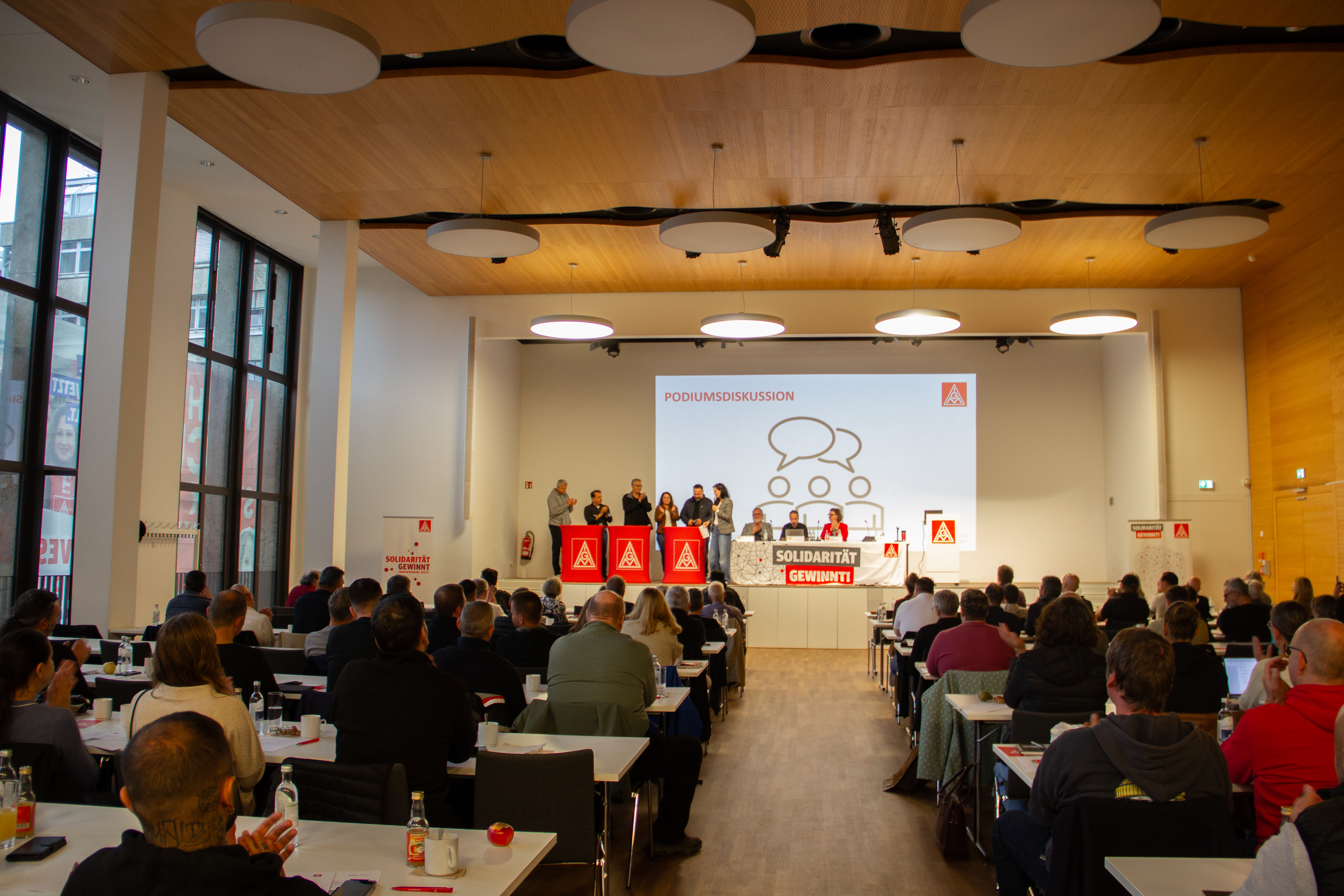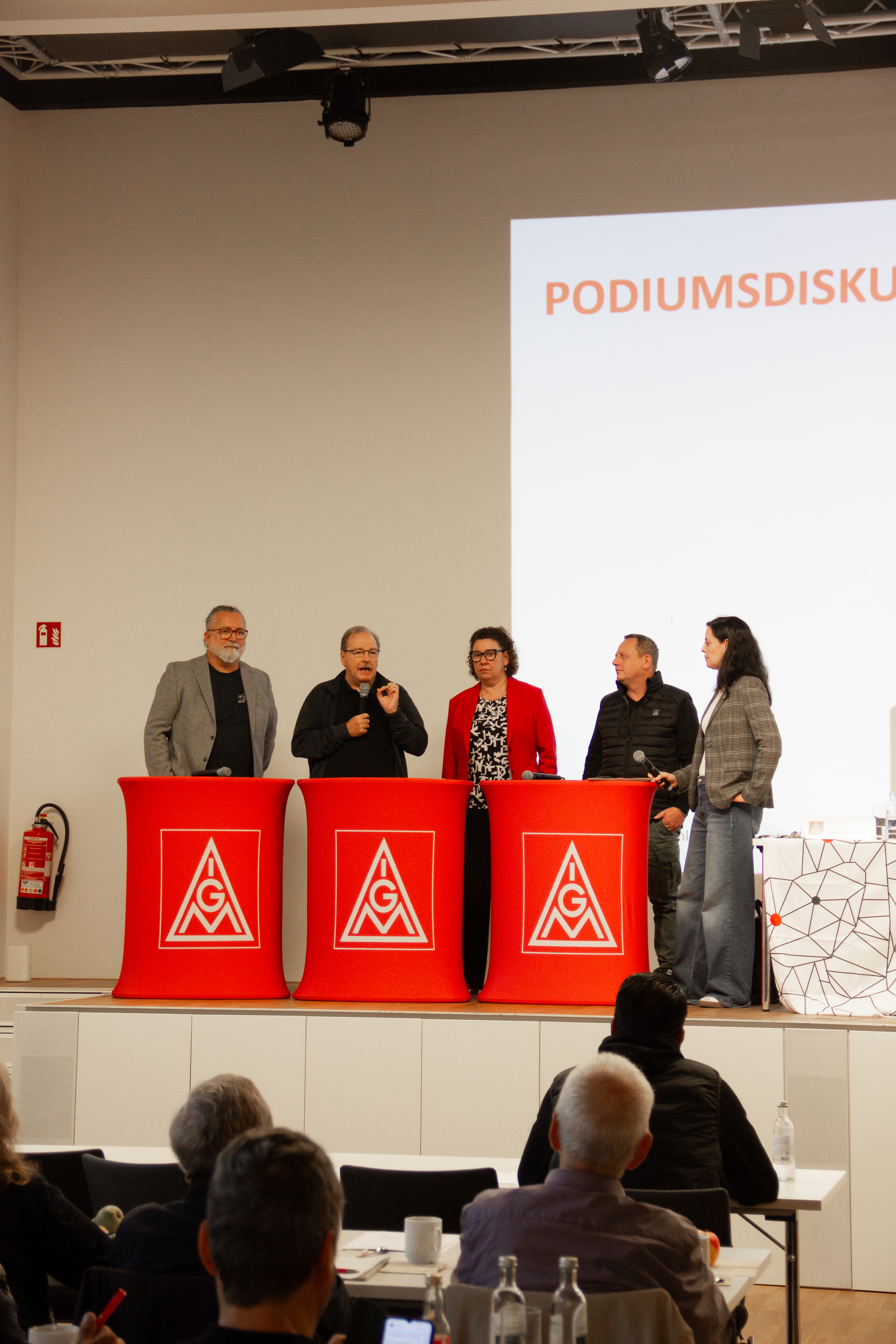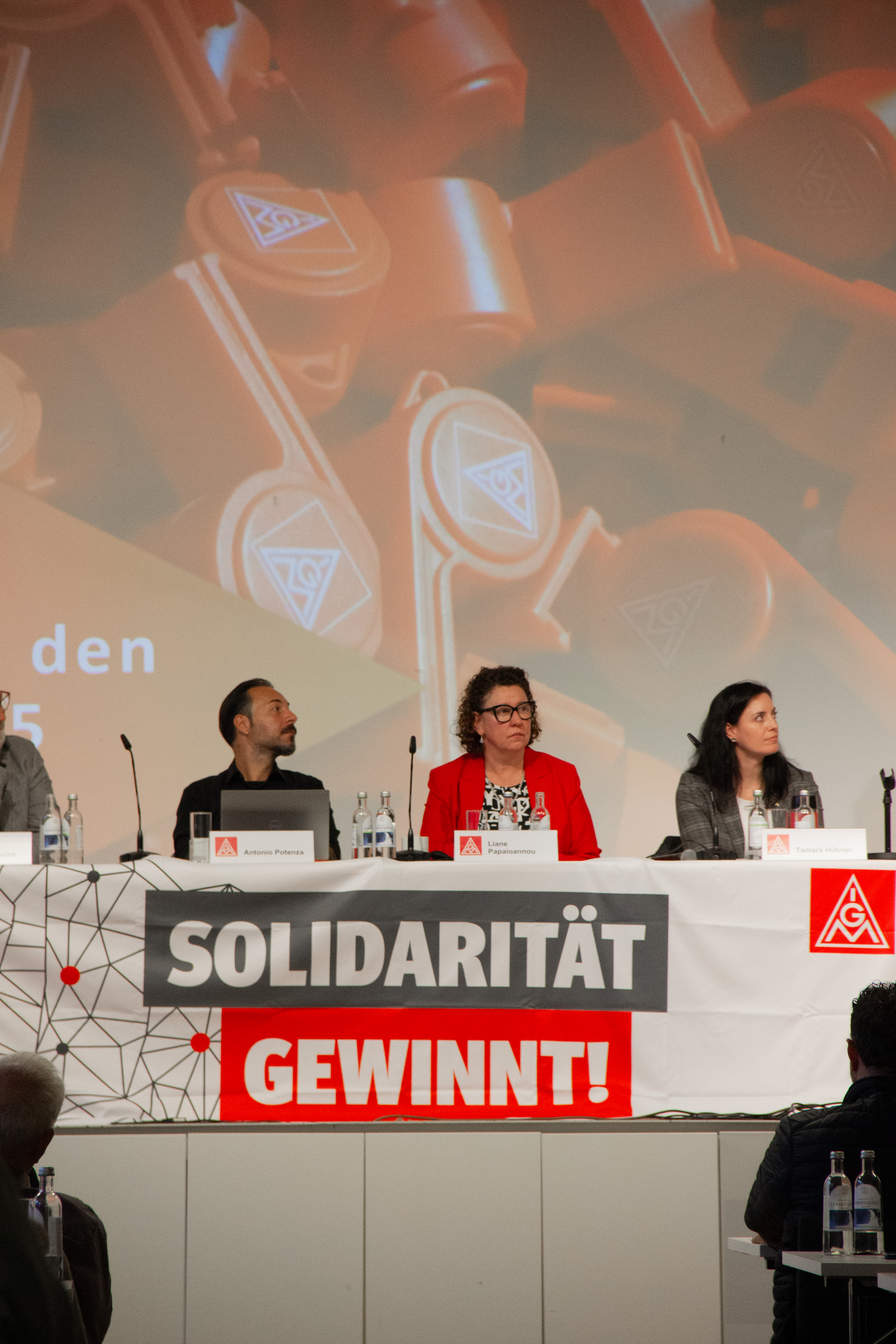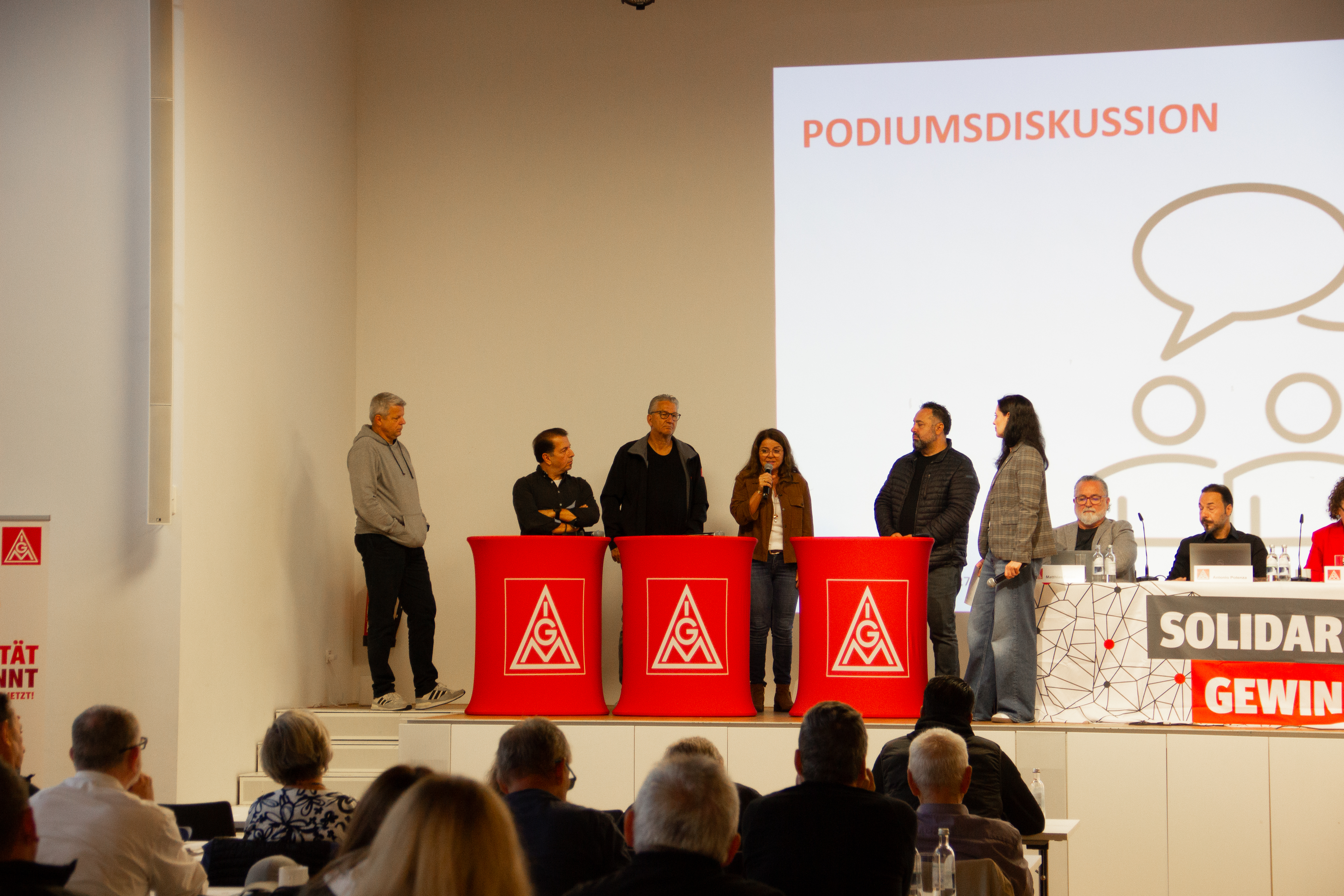 Am 27. September 2025 kamen die Delegierten der IG Metall Stuttgart zu ihrer turnusmäßigen Versammlung zusammen. Liane Papaioannou, Erste Bevollmächtigte und Geschäftsführerin der IG Metall Stuttgart, eröffnete die Versammlung mit einem politischen Bericht. Dabei ging sie auf Themen der internationalen Sicherheitspolitik und die Auswirkungen der aktuellen Wirtschaftspolitik ein. Ein besonderer Fokus lag auf der Arbeitsmarktpolitik. Ergänzt wurde dieser Fokus durch einen Bericht von der Industriekonferenz der IG Metall, die wichtige Impulse für die zukünftige Industriepolitik setzte.