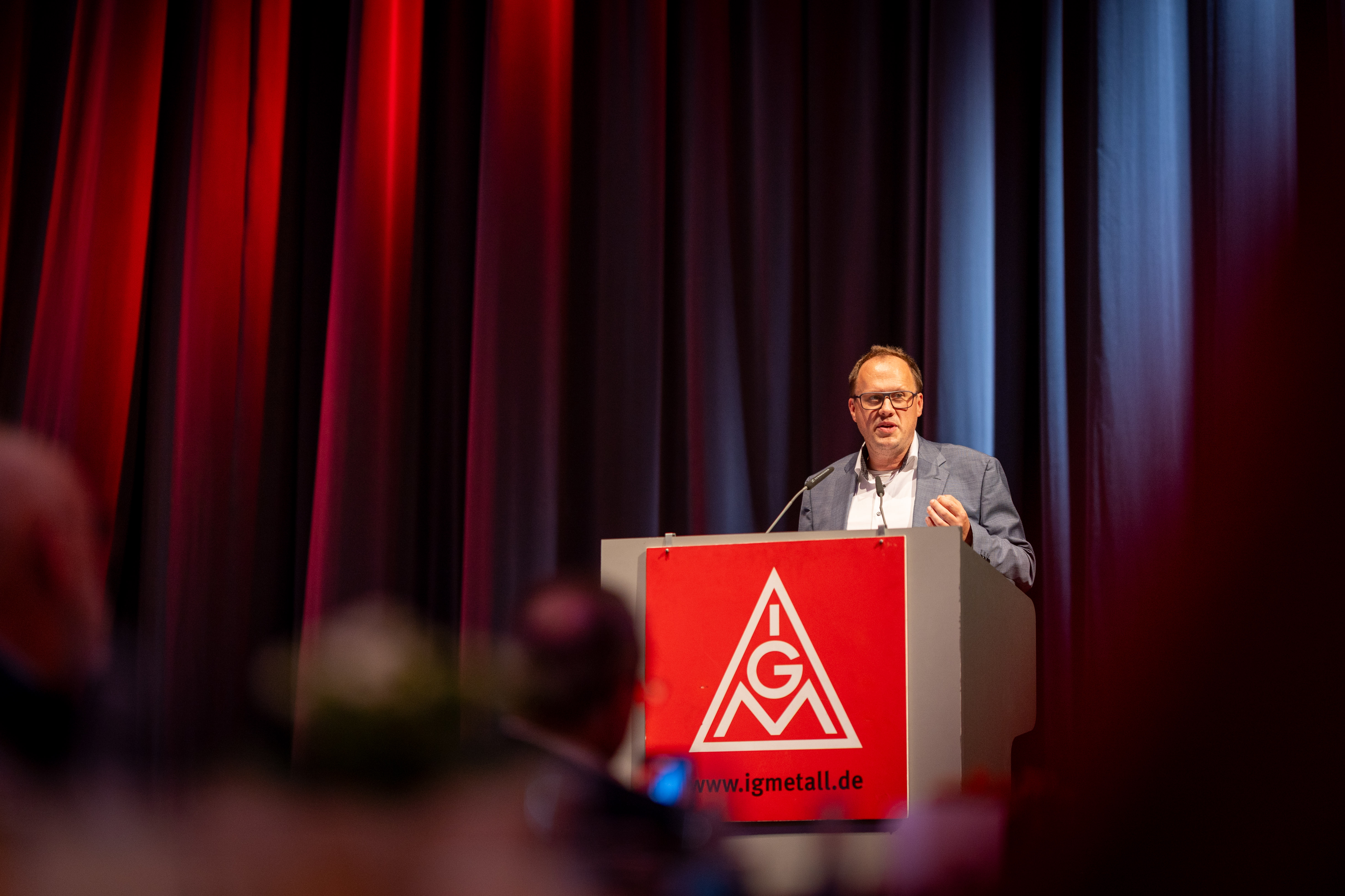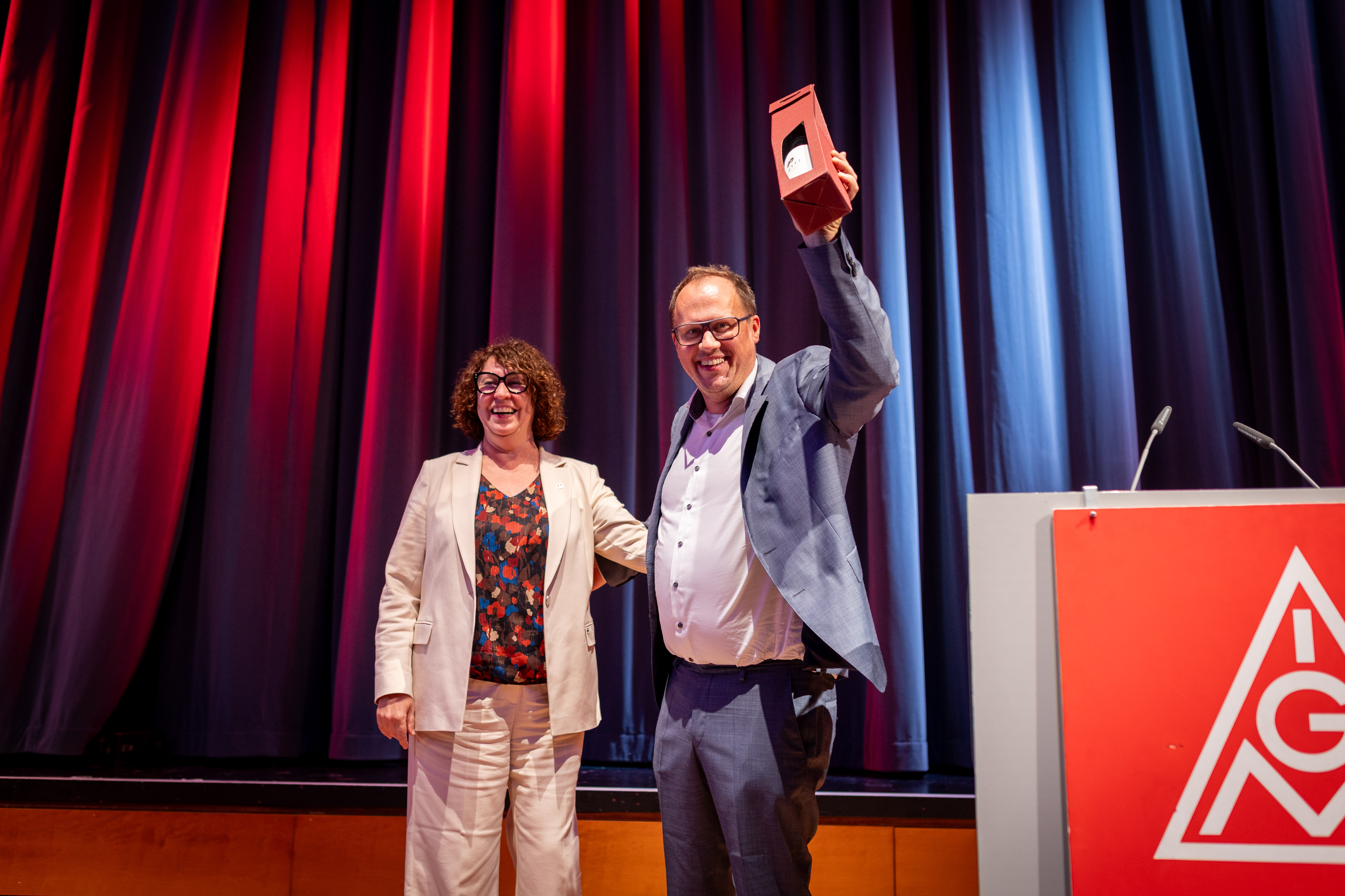 Mit einem Blick auf die derzeitigen Herausforderungen, hob Papaioannou die Rolle der IG Metall hervor: „In einer Zeit, in der sich die Arbeitswelt rasant wandelt und Errungenschaften, wie der 8-Stunden-Tag auf dem Spiel stehen, brauchen wir mehr denn je den Zusammenhalt, den ihr verkörpert. Die Herausforderungen sind groß: prekäre Beschäftigung, der Druck auf Tarifbindung und die Frage, wie wir gute Arbeit auch in der Transformation sichern. Ihr habt gezeigt, was es heißt, Haltung zu bewahren. Dafür danken wir euch – nicht nur mit Worten, sondern mit dem Versprechen, euren Einsatz weiterzutragen, denn Haltung brauchen wir heute, um die Zukunft der Arbeit gerecht zu gestalten."