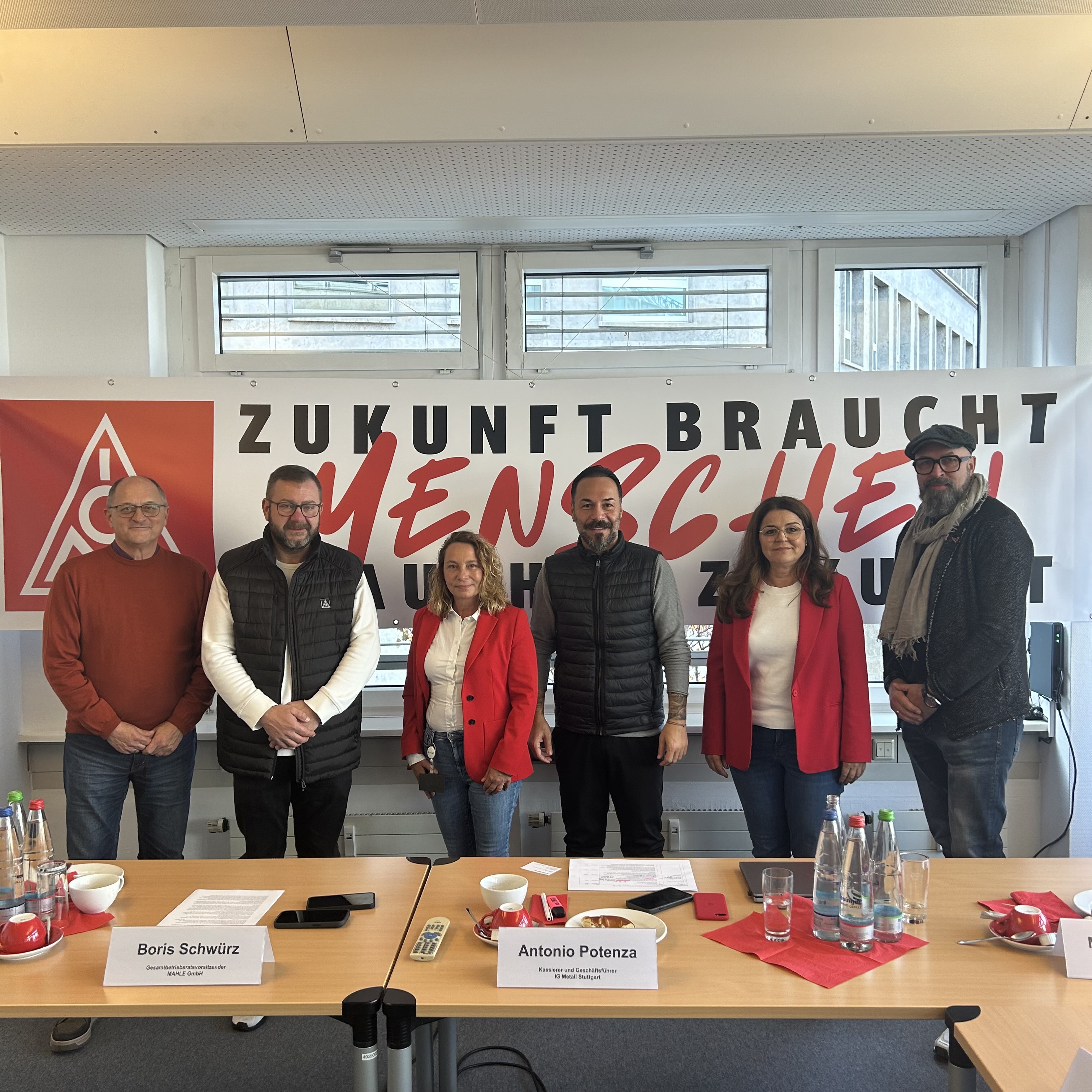Die IG Metall Stuttgart, der Gesamtbetriebsratsvorsitzende der MAHLE GmbH und die Betriebsratsvorsitzenden der MAHLE GmbH sowie der MAHLE Thermal and Fluid Systems GmbH & Co. KG stellen sich im Rahmen des heutigen Pressegesprächs in den Räumlichkeiten der IG Metall Stuttgart gegen den angekündigten Stellenabbau.