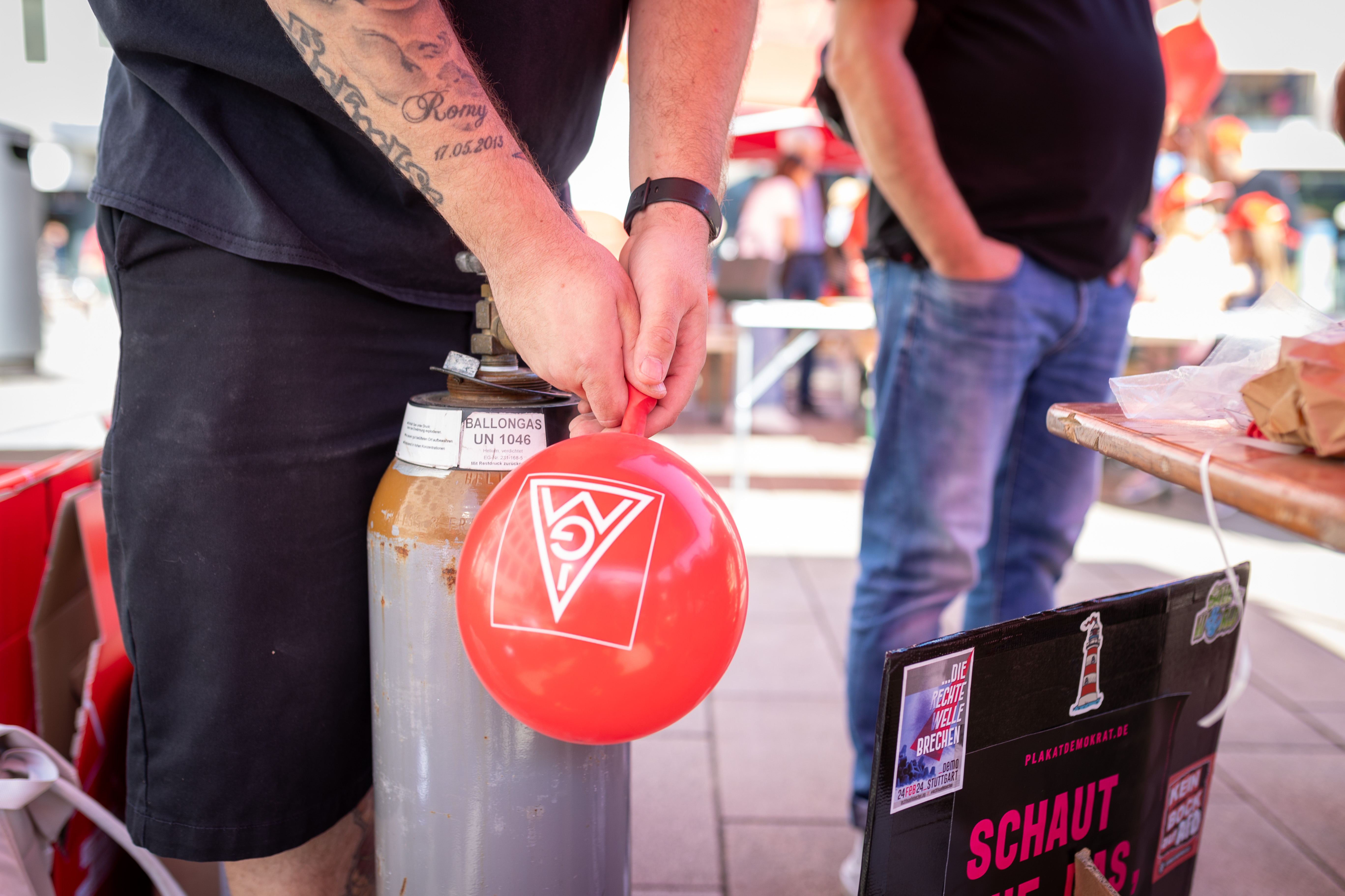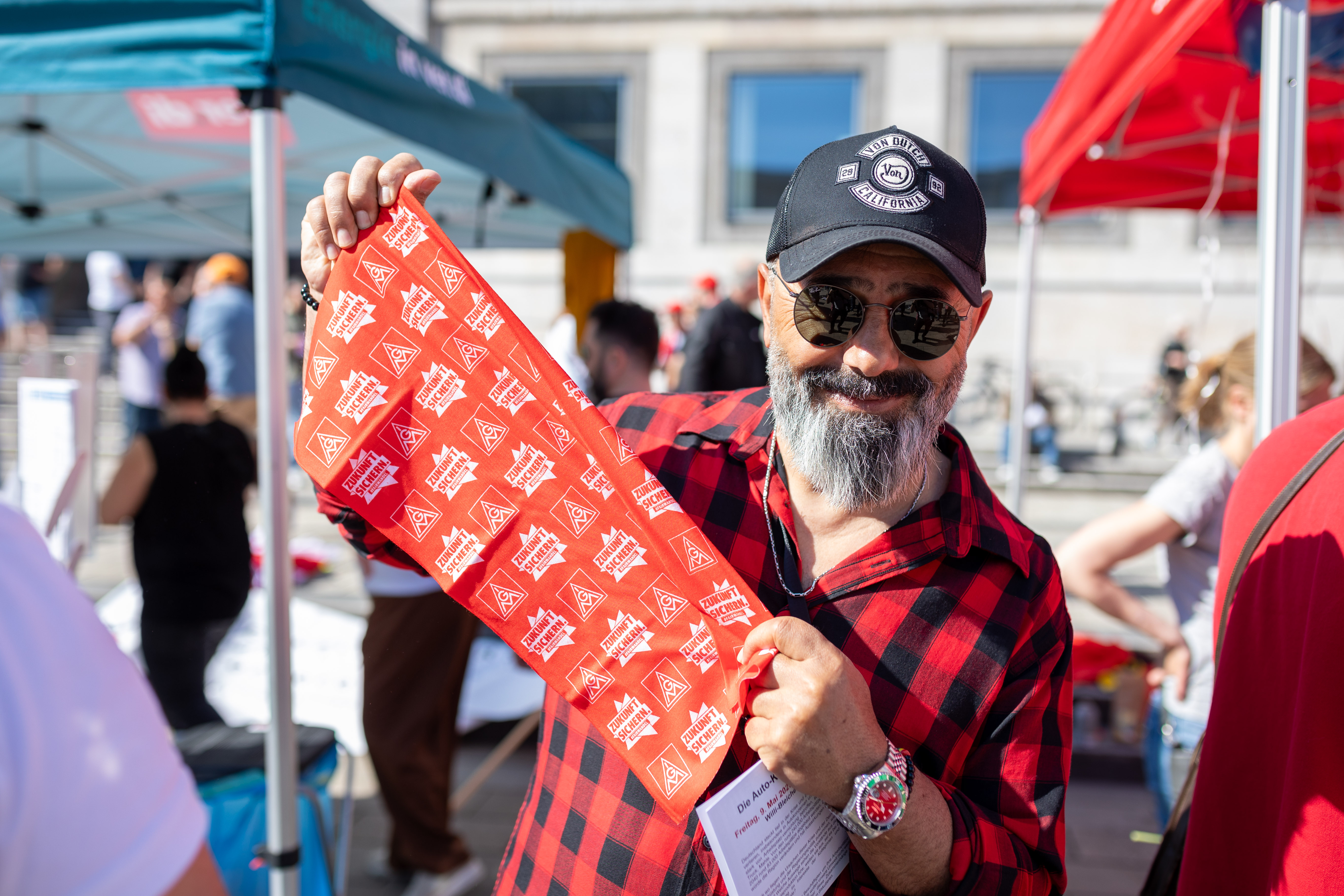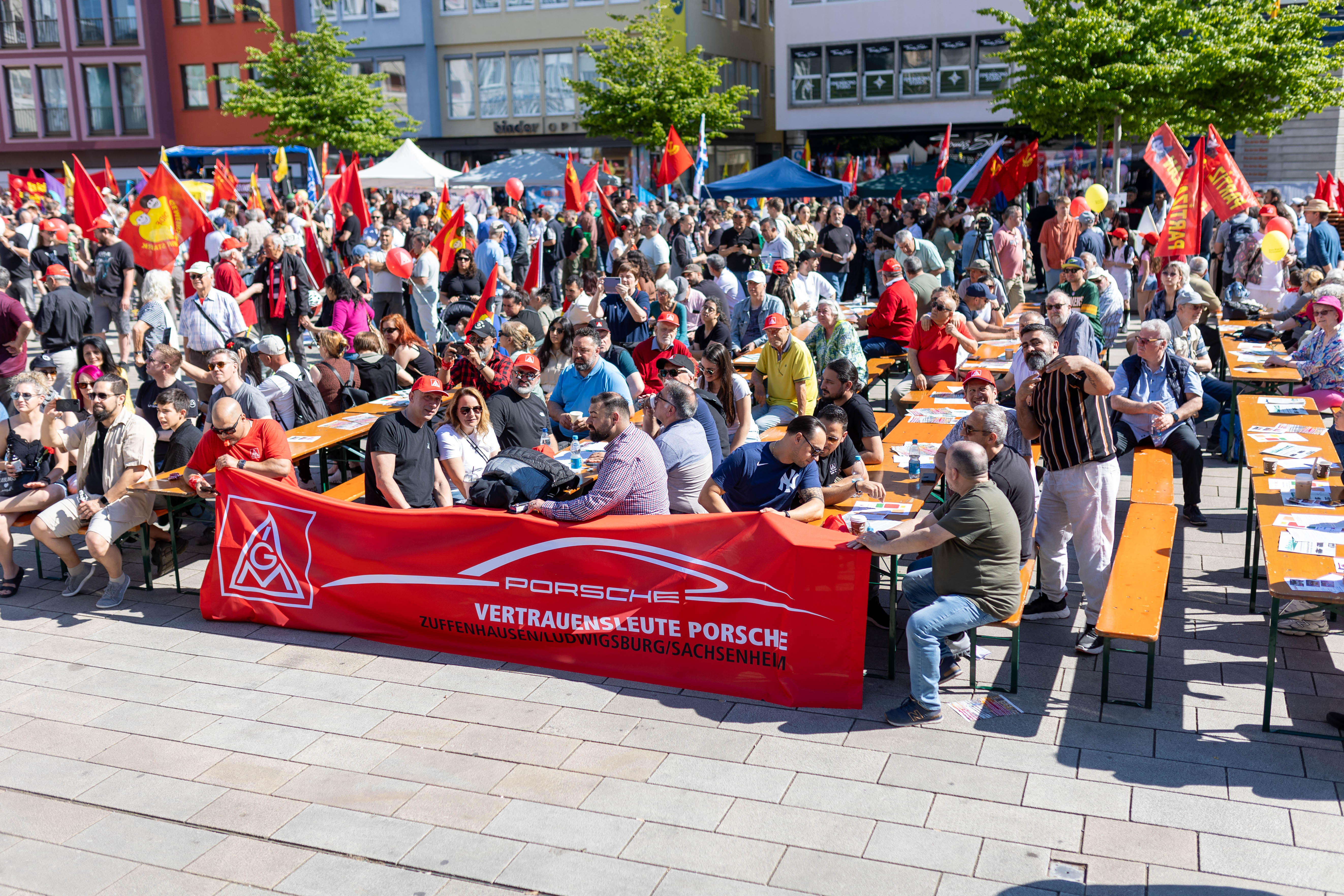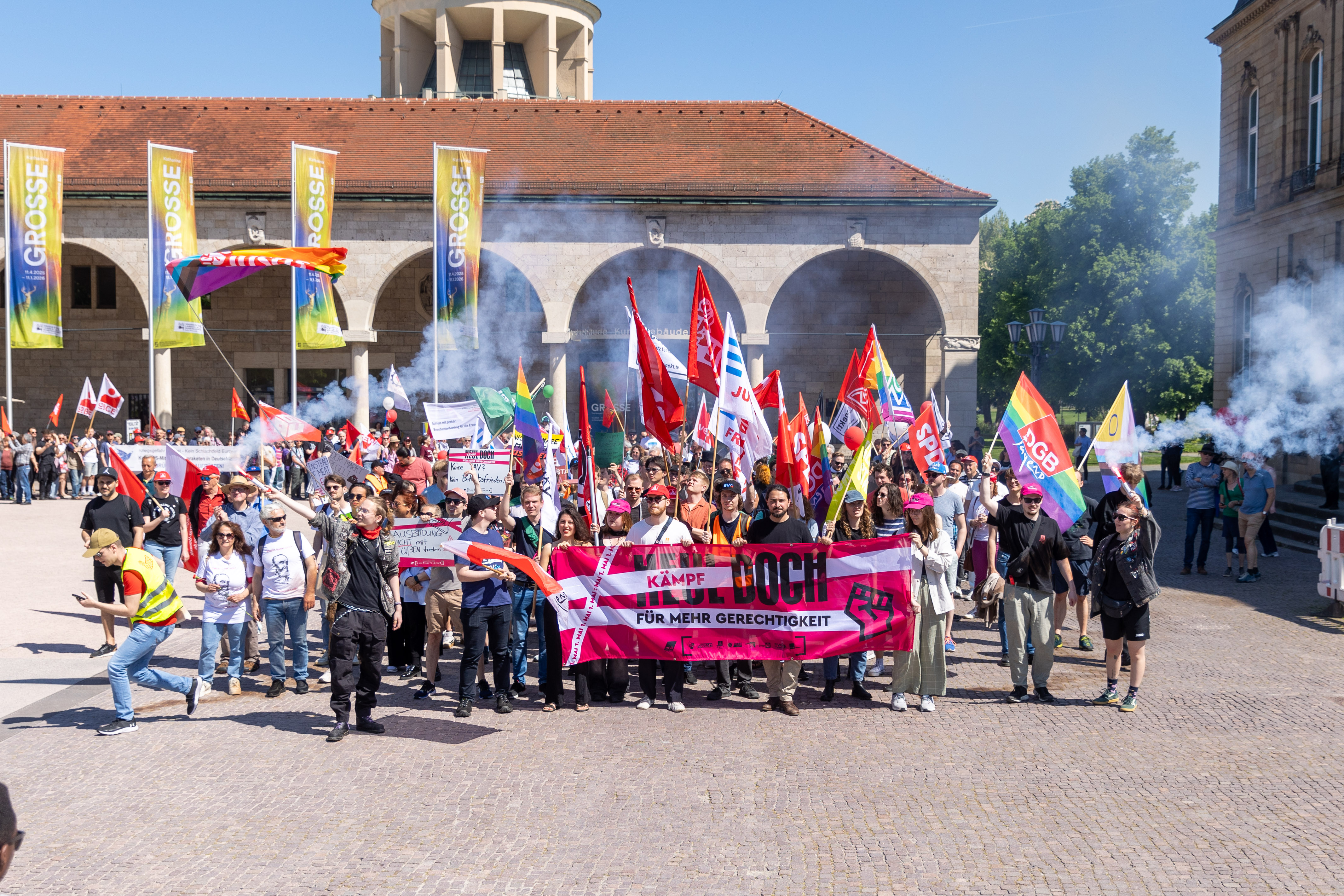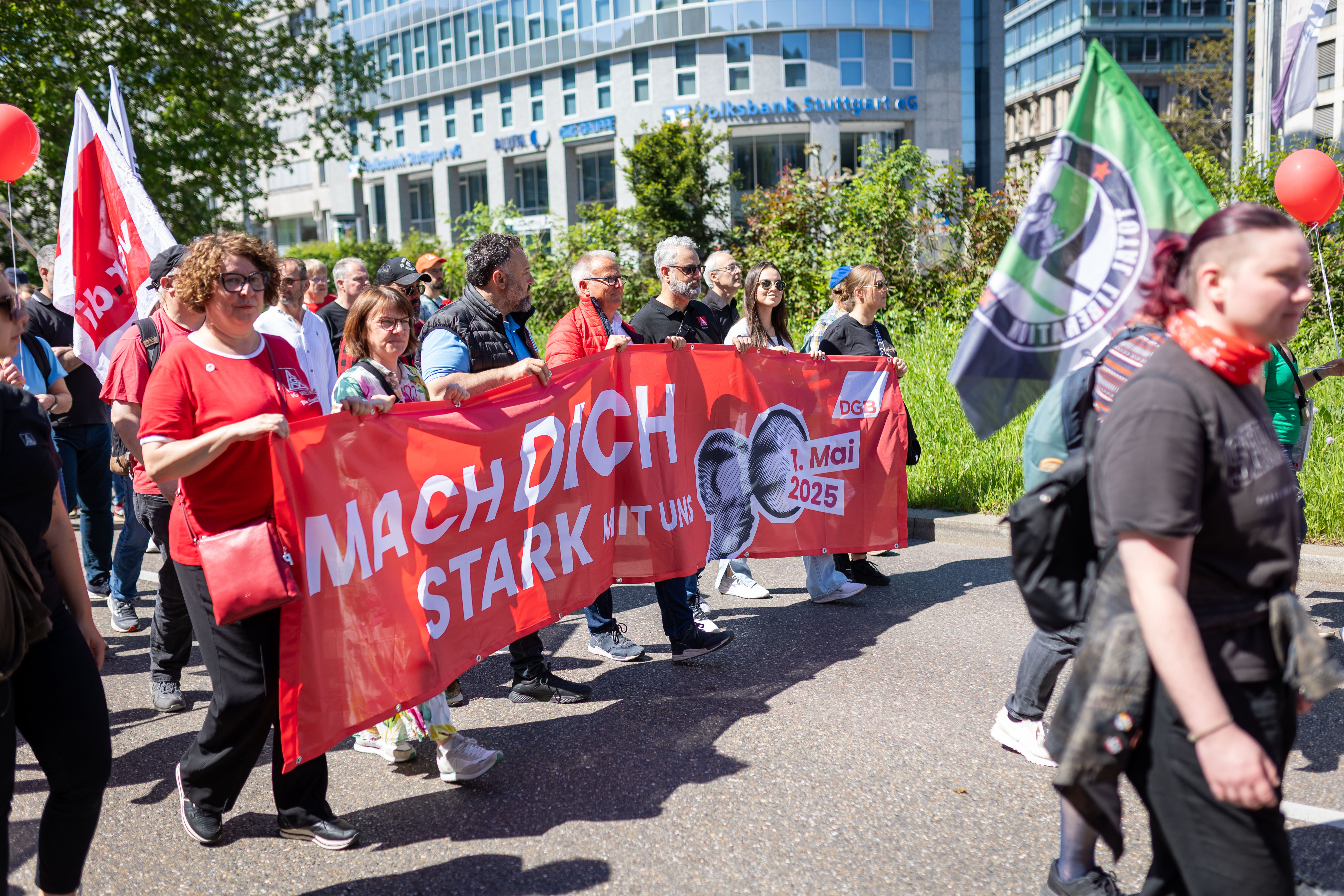 Unter dem Motto "Mach dich stark mit uns!" begingen zahlreiche Gewerkschafter*innen, darunter viele Metaller*innen in Stuttgart den Tag der Arbeit. Der DGB hatte zur Kundgebung auf dem Marktplatz in Stuttgart geladen.