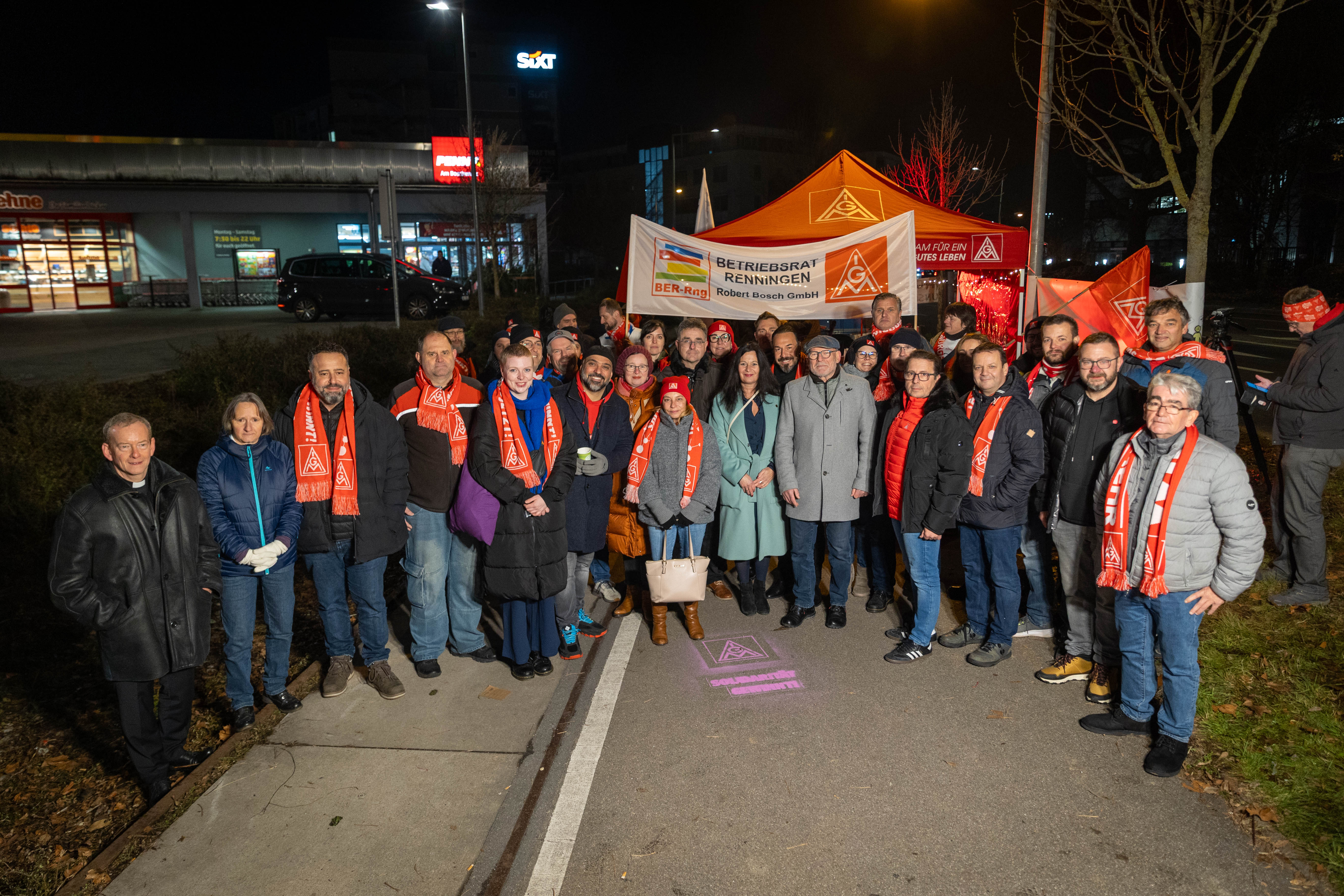 Diesen Zustand nehmen die Beschäftigten bei Bosch nicht kampflos hin: 36 Stunden zeigen die IG Metall Vertrauensleute, Beschäftigte und der Betriebsrat Präsenz gegenüber Tor 1 des Feuerbacher Standortes. Hier diskutieren die Beschäftigten mit Politiker*innen der demokratischen Parteien, der Presse sowie Delegationen aus Stuttgarter Betrieben über die Zukunft bei Bosch und der Industrie der Region Stuttgart.