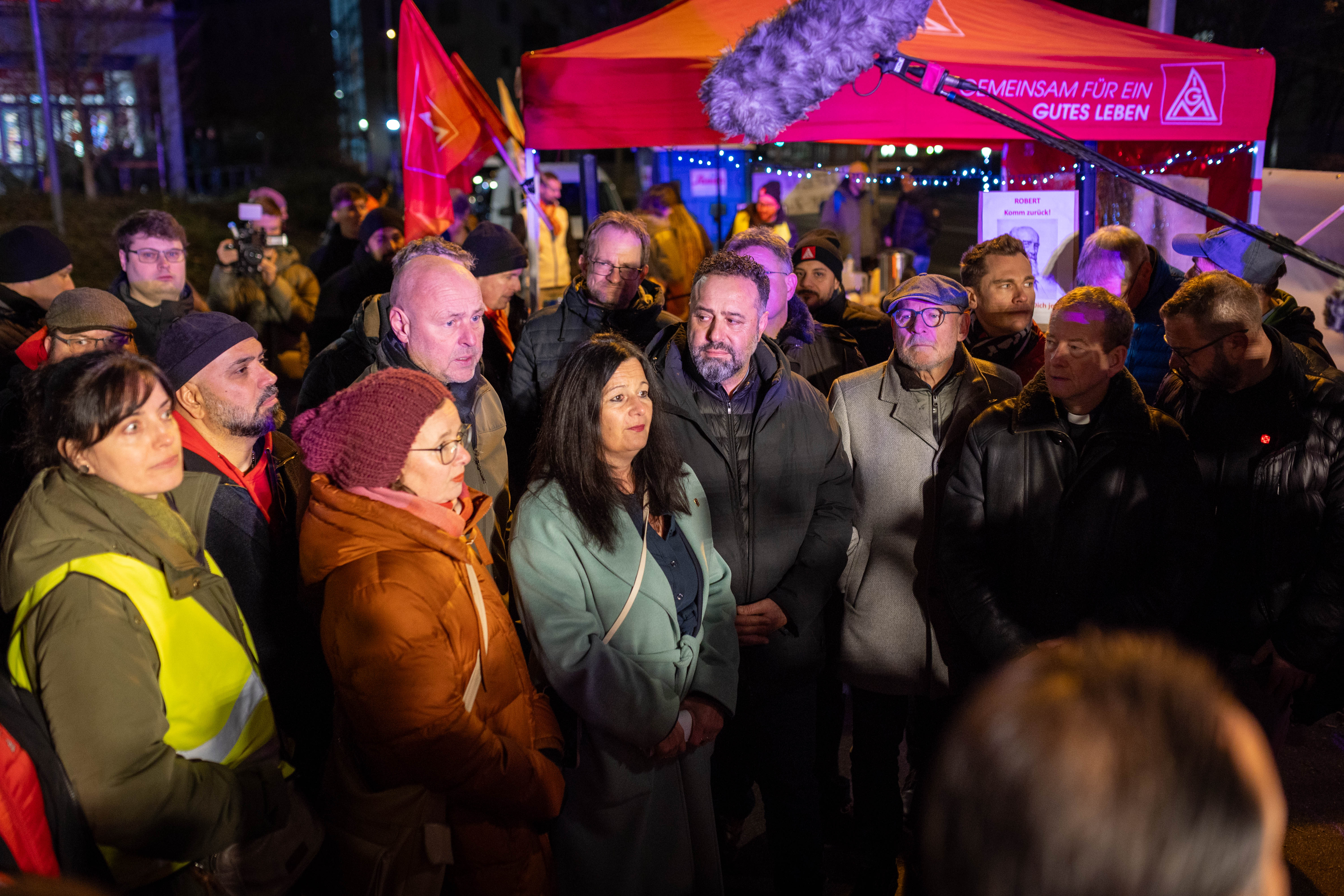 Die „Zukuftsschicht“ endet am 4.12.25 mit der symbolischen Beerdigung der Feuerbacher Arbeitsplätze und der Unternehmenswerte. Andreas Koelpin, Betriebsrat und Vertrauenskörperleiter am Standort Feuerbach zu dieser Aktion: „Wir stehen hier, um die BOSCH Familie, die Stiftung und die Arbeitgeber im Aufsichtsrat daran zu erinnern, dass Robert Bosch eine Kultur geschaffen hat, die auf gegenseitigen Respekt, Fairness Offenheit, Vertrauen und Verantwortungsbewusstsein basiert. Diese Kultur wird immer mehr durch die Worte „Ebit“ und „betriebsbedingte Kündigungen“ ersetzt und somit viele dieser Werte durch die Geschäftsleitung beerdigt. Aufgrund dessen beerdigen wir am 04.12.2025 symbolisch diese Werte und den Abbau von zehntausenden Arbeitsplätzen.“