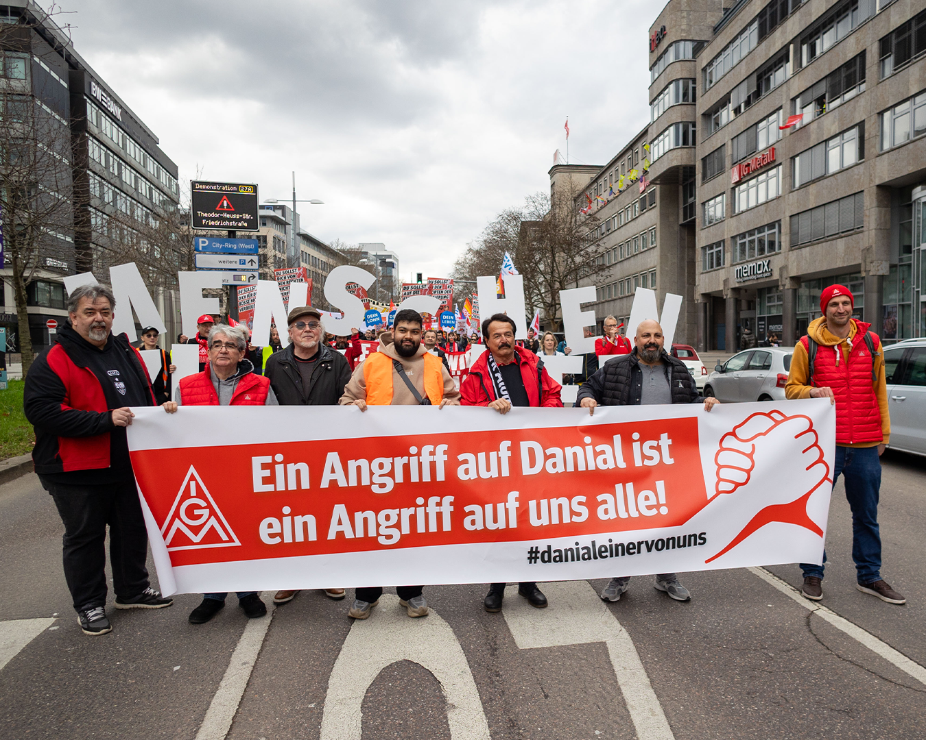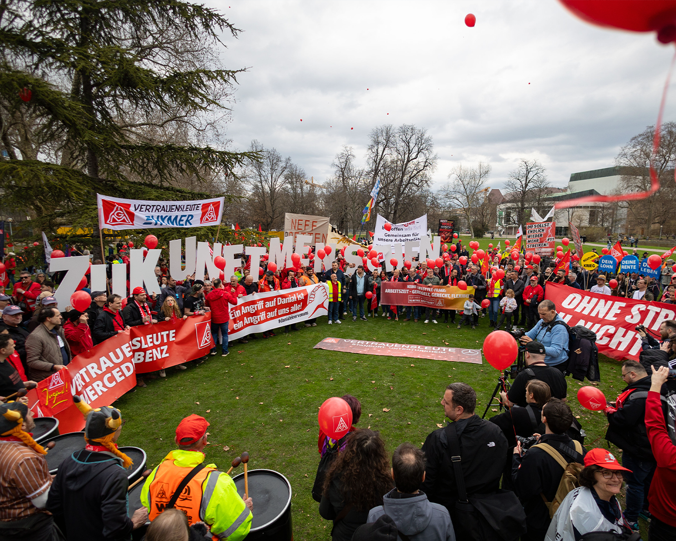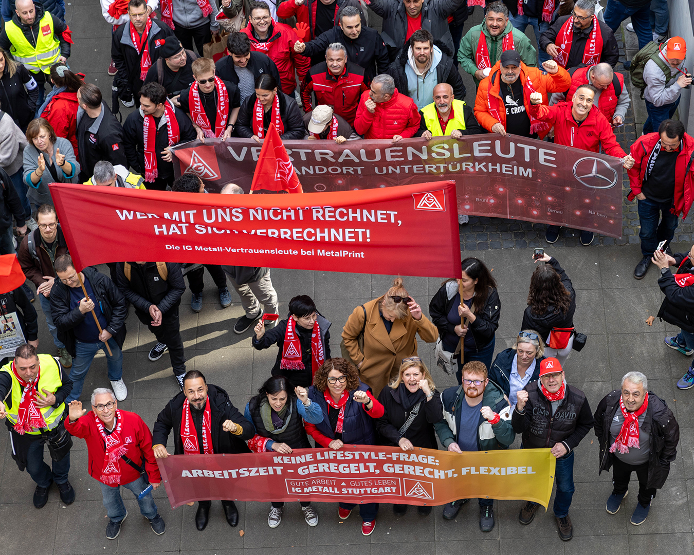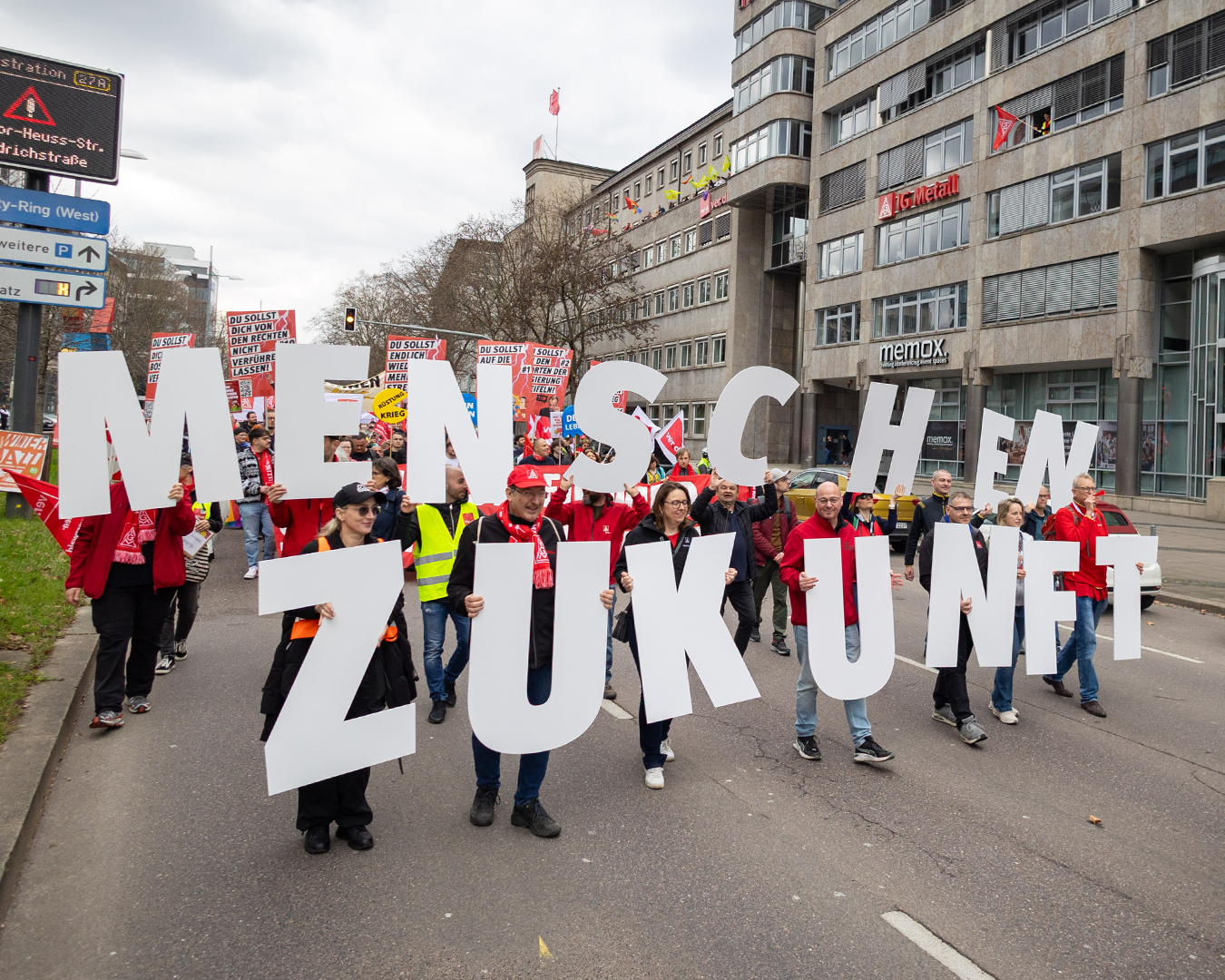 Ein starkes Zeichen setzten auch die Senior*innen der IG Metall Stuttgart. Der Ortssenioren-Ausschuss nahm mit zahlreichen Kolleginnen und Kollegen im Alter zwischen 63 und über 90 Jahren an der Kundgebung teil. Solidarisch an der Seite der aktiven Kolleginnen und Kollegen machten sie deutlich, dass gute Arbeit, ein gutes Leben und ein würdiges Leben im Ruhestand zusammengehören.