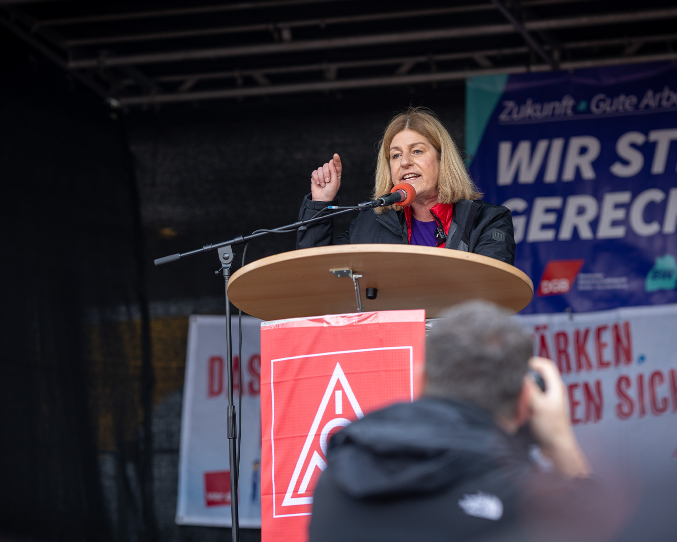 Im Anschluss sprach Barbara Resch, Bezirksleiterin der IG Metall Baden-Württemberg. Sie machte klar, dass die Beschäftigten Sicherheit statt wachsender Unsicherheit brauchen und dass dafür klare politische Entscheidungen zu Energiepreisen, Investitionen, Genehmigungen, Infrastruktur und Industriepolitik notwendig sind.