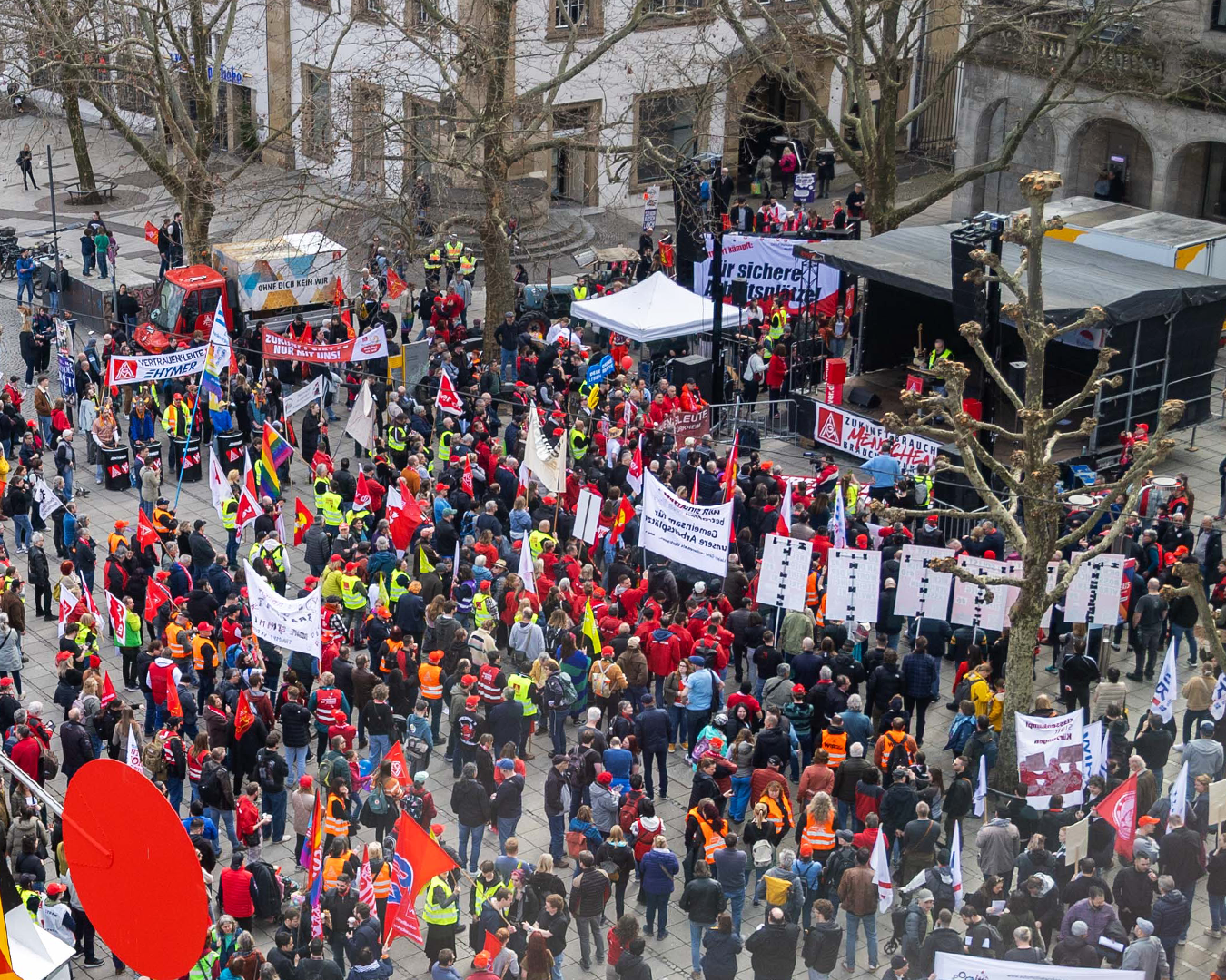 Stuttgart. Am Samstagmittag haben Gewerkschaften aus ganz Baden-Württemberg auf dem Schlossplatz und vor dem Landtag ein deutliches Zeichen gesetzt. Unter dem Motto „5 vor 12 – Höchste Zeit für gute Arbeit & gutes Leben“ versammelten sich rund 7.500 Gewerkschafter*innen im Herzen der Landeshauptstadt.